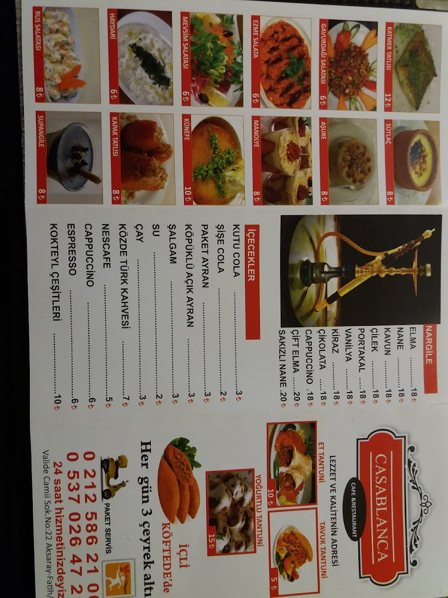 Casablanca Cafe Menu